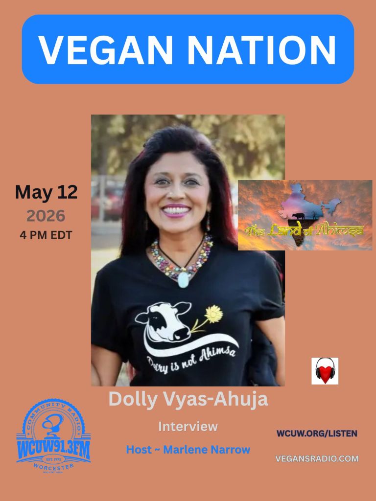 Vegan Nation features an interview with Dolly Vyas-Ahuja, documentary filmmaker of “The Land of Ahimsa“. Tues., May 12, 2026, 4 PM EDT, On-Air WCUW 91.3 FM wcuw.org/listen