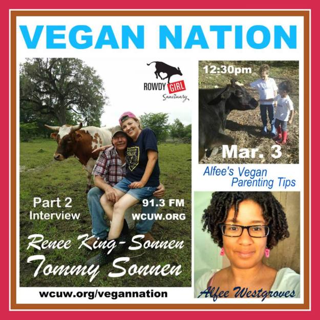 VEGAN NATION Part 2 interview with Renee King-Sonnen and Tommy Sonnen, co-founders of Rowdy Girl Sanctuary in Texas. WCUW 91.3 FM radio in central Massachusetts, USA, and wcuw.org. March 3, 2017 Hosted by Marlene Narrow, WCUW, Worcester, MA. This is Part 2 of a 3-Part interview. vegansradio.com Rowdy Girl Sanctuary Interviews 2015- 2025