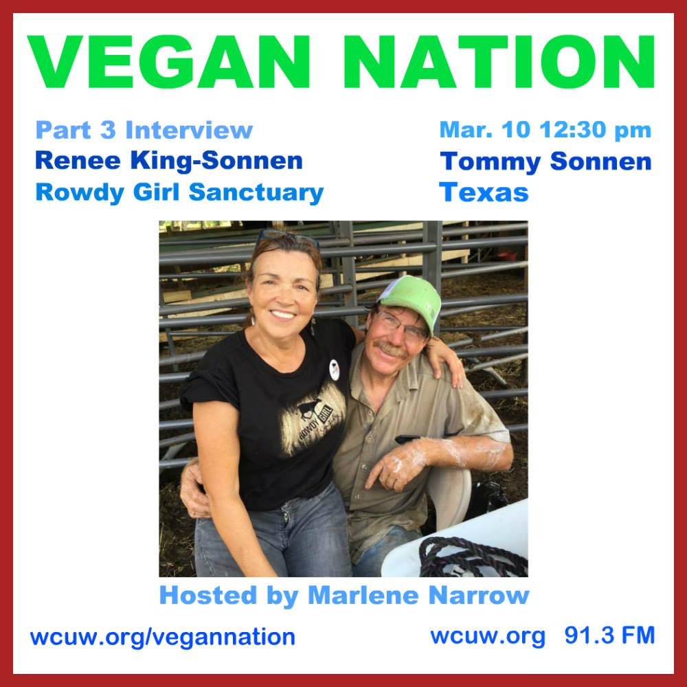 VEGAN NATION Radio interview, Part 3, Renee King-Sonnen & Tommy Sonnen, founders of Rowdy Girl Sanctuary, Angleton, Texas. March 10, 2017 WCUW 91.3 FM and wcuw.org worldwide live-stream. This is Part 3 of a 3 Part interview. LISTEN TO THE REPLAY AT THE AUDIO LINK BELOW. Thank you. Rowdy Girl Sanctuary interviews 2015-2024