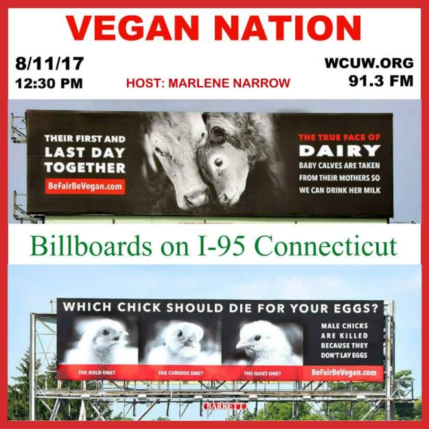 August 11, 2017 – Vegan Nation. Hosted by Marlene Narrow, WCUW 91.3 FM Worcester, Massachusetts, USA. Listen worldwide on the web at wcuw.org
