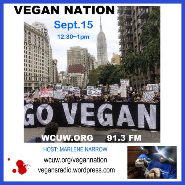 wcuw.org/vegannation Broadcasting every TUESDAY 4 PM EST. September 15, 2017, featuring Official Animal Rights March worldwide; and DxE Vigil, Utah.