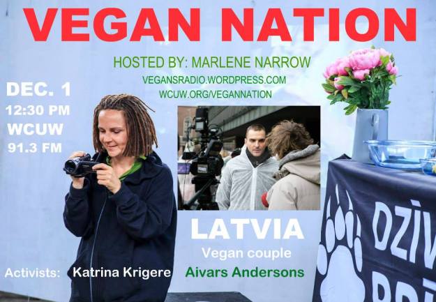 December 1, 2017 ~ Interview with a Vegan couple in Latvia who are Vegan activists: Katrīna Krīgere and Aivars Andersons. This past summer, they hosted Latvia’s first Vegan Festival (with a crowd of 5,000 people). They are active in AR for circus animal; and as a result, wild animals in circuses have now been banned in Latvia (as well as Estonia, India, and Italy). Aivars and Katrina also work to transform animal agriculture to plant agriculture. They are winners of the 2017 Lisa Shapiro Awards, celebrating unsung Vegan heroes, sponsored by The Pollination Project.