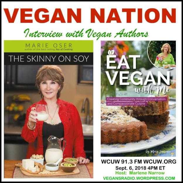 Vegan Nation interview with Vegan author, Marie Oser, who is also the president/exec. producer of VegTV. Also, featuring an interview with author, Mary Lawrence, who is also the exec. chef/wellness educator at Well on Wheels. Tune in September 6, 2018.