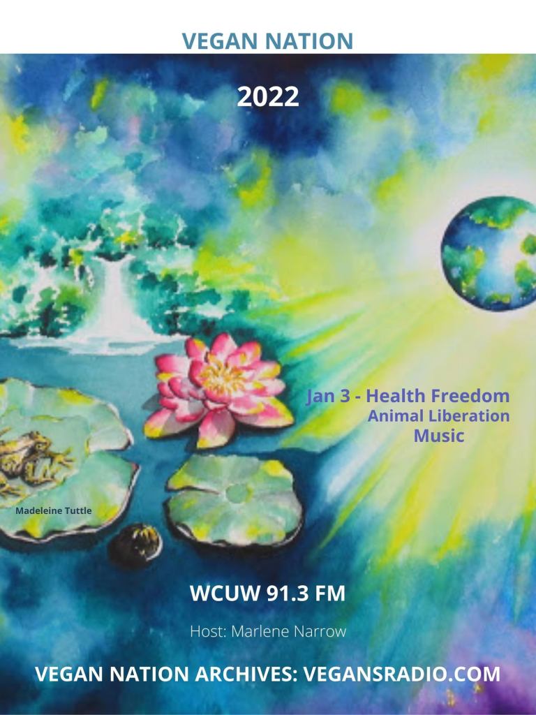 Hosted by Marlene Narrow, Worcester, Massachusetts. Vegan Nation airs on WCUW 91.3 FM, online: wcuw.org/listen. 1/2 hr radio show featuring vegan news, events, music and more. Vegan Nation’s first broadcast was January 2, 2015. Thank you for caring enough to hear and be heard. (The views and opinions expressed in this program do not necessarily reflect the views and opinions of this radio station nor its management.)