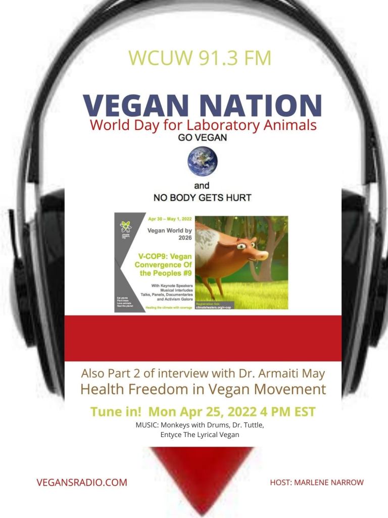 On April 25, 2022, Vegan Nation celebrates World Day for Laboratory Animals (4-24). Interview (Part 2) with Dr. Armaiti May, founder of VAPA – Veterinary Association for the Protection of Animals. Topic includes health freedom in Veganism.