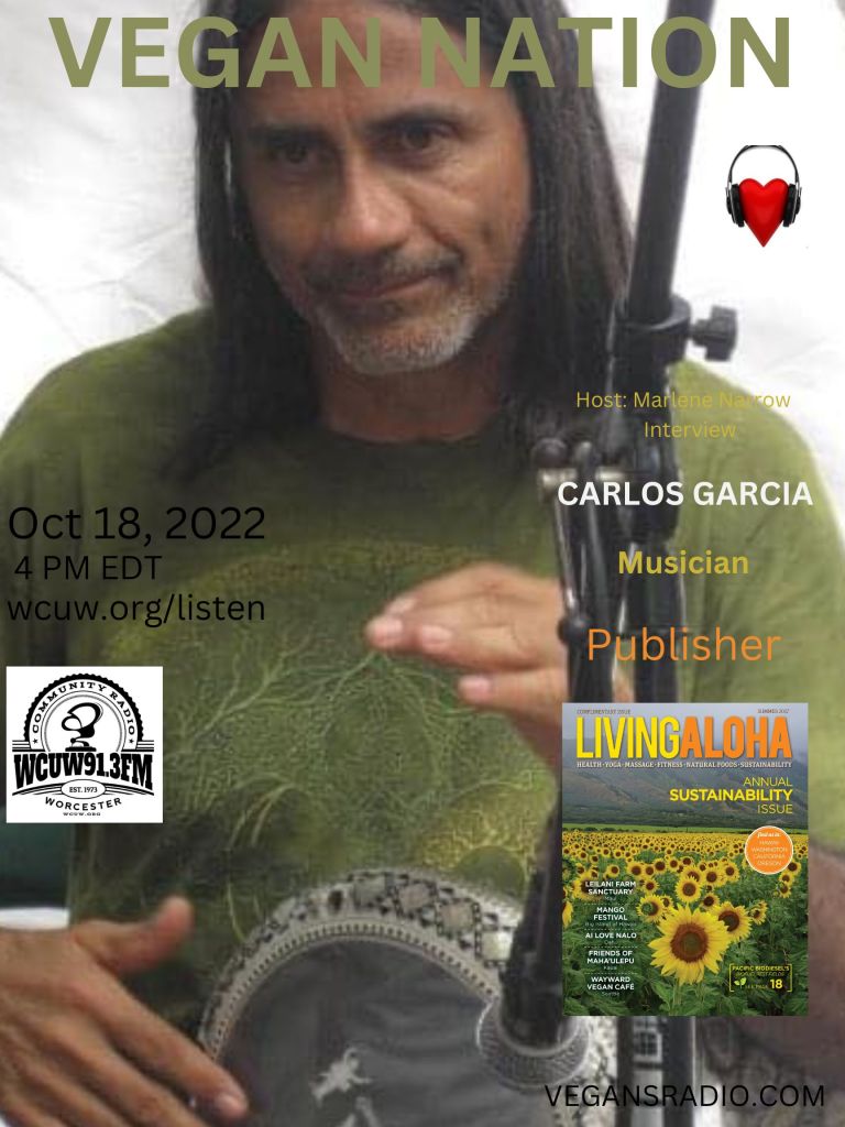 Vegan Nation – interview with Carlos Garcia. Also featuring the song, “It’s OK to Love Me” by his band, Monkeys with Drums. Tune in! Tues Oct 18, 2022 4 PM EDT WCUW 91.3 FM wcuw.org/listen Thank you!