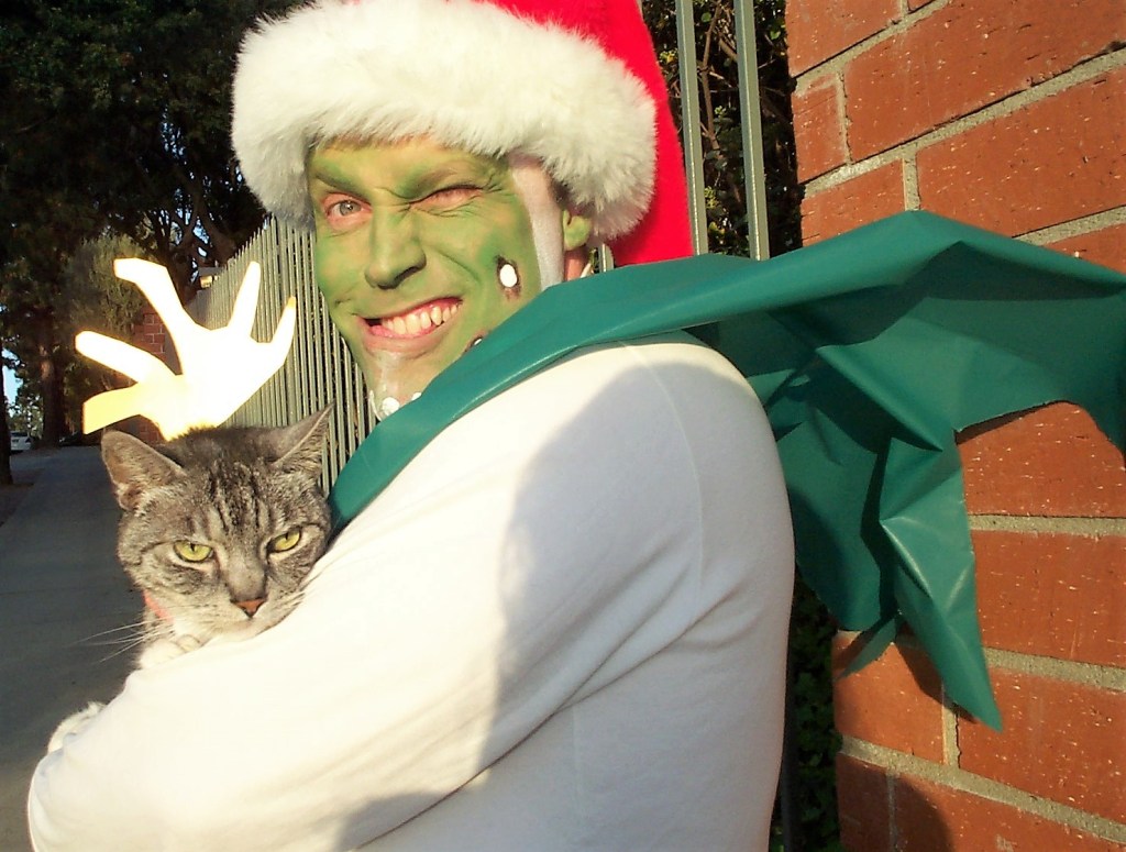 Shelley Harrison is also the author of A Vegan Christmas Carol. Vegan Nation interview about his book can be heard here (December 13, 2018). Photo of Shelley Harrison & his cat (“I did not attach an antler to his head, by the way, just held up a fake antler behind him”):