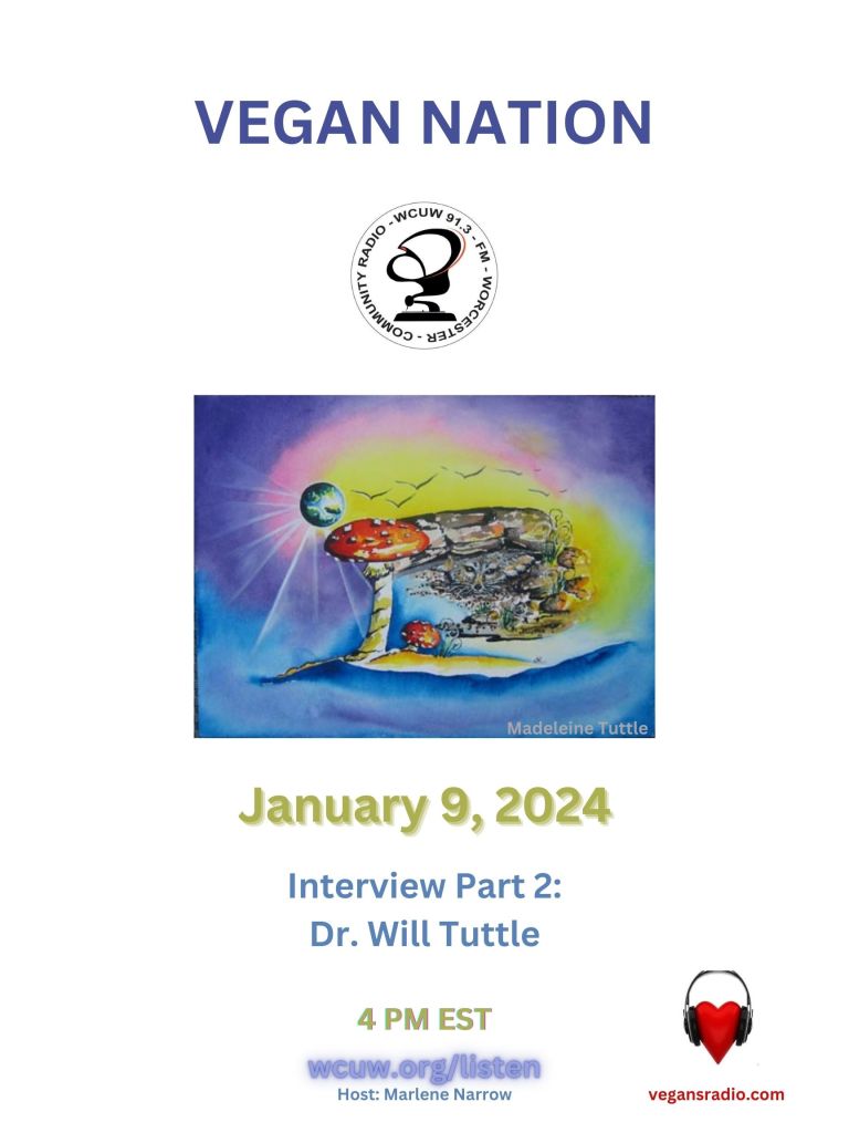 LISTEN to the REPLAY at the audio link above (Part 2). The replay for Part 1 is below. Vegan Nation celebrates the new year of a Vegan paradigm rising on Earth! Interview (Part 2) with Dr. Will Tuttle. Tune in Tuesday! January 9, 2023. 4 pm EST. WCUW 91.3 FM. Listen worldwide online: wcuw.org/listen Hosted by Marlene Narrow, Worcester, Massachusetts, USA. Archives: vegansradio.com Thank you for caring enough to hear & be heard, for your support of nonprofit Community radio, and for your compassionate, wise Vegan activism.