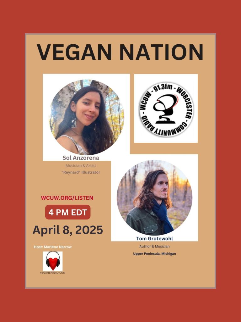Listen to the replay at the link above (29 minutes and 7 seconds audio .mp3). Thank you. Tues, April 8, 2025, 4 PM EDT. WCUW 91.3 FM wcuw.org/listen. Vegan Nation is in The LOBE!