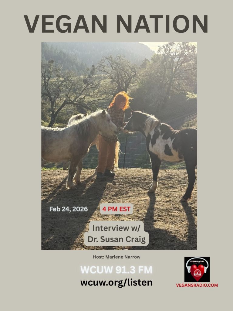 Dr. Susan Craig joins us from Northern California for a Vegan Nation interview. Tune in Tuesday, February 24, 2026, 4 PM EST on WCUW 91.3 FM. WCUW.org/listen. Hosted by Marlene Narrow, Worcester, Massachusetts, USA. vegansradio.com. We’re in The LOBE!
