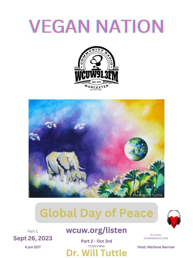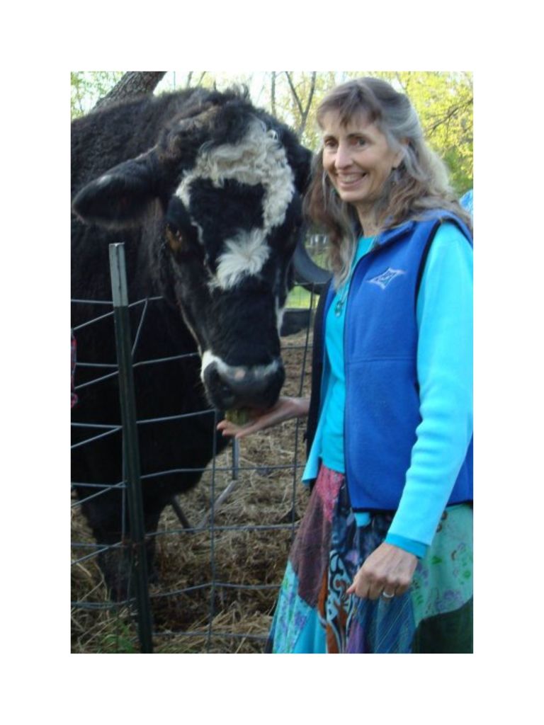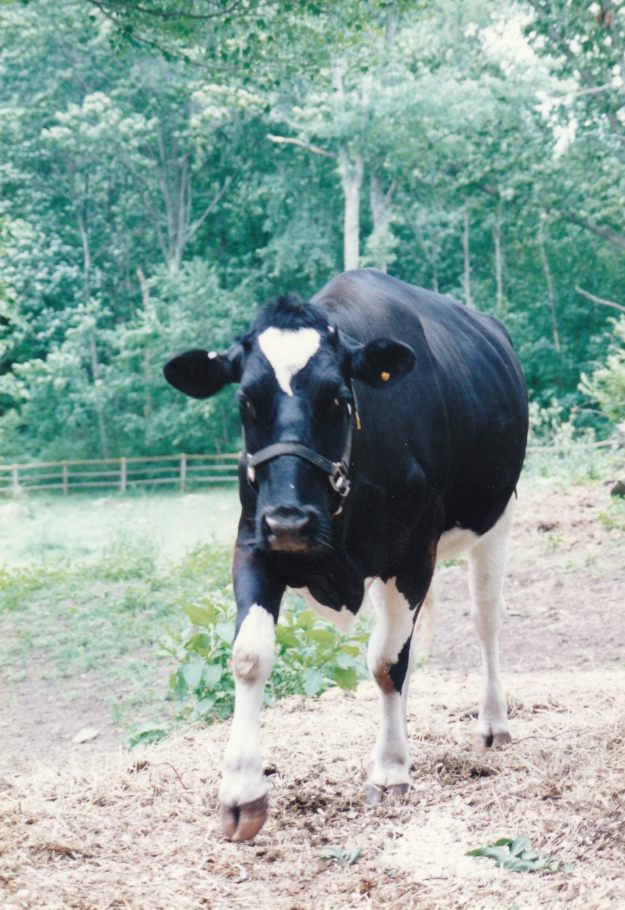 Will & Madeleine Tuttle, and statue of Emily, a Holstein cow who escaped from a dairy farm slaughterhouse in Massachusetts, fled into the woods, survived several weeks in the winter (at times with a herd of deer), and then was happily rescued & lived many years at the Peace Abbey in Massachusetts