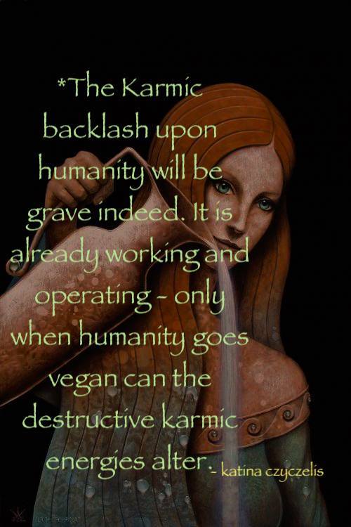 When we have been indoctrinated to be carnistes, the tragedy is multiplied because the greed and lust to consume the flesh of victims, is basically an addiction to consuming blood. That is why it’s primarily muscle tissue that carnistes consume. Muscle is the most vascular organ (containing high amounts of blood). Breast milk (dairy products) and eggs (ovu-menstrual secretions) are also derivatives of blood. “As we sow we will reap” is a reality based on quantum frequencies & collective Consciousness ~ affecting someone, somewhere, at sometime, in some way – reverberating throughout Eternity, lifetime after lifetime.