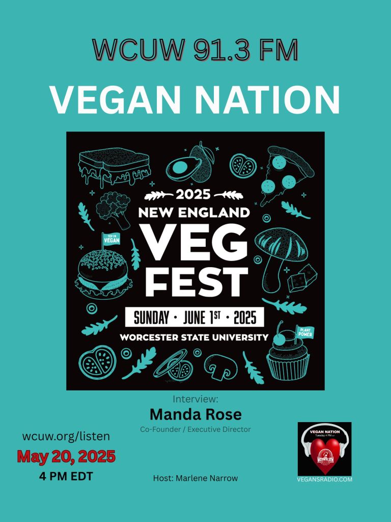 Replay of Vegan Nation‘s New England VegFest interviews ~ 2015 to 2025 (1/2-hour ea. show):